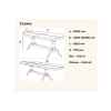Конструкция стола позволяет регулировать увеличение длины столешницы: для этого предусмотрены 2 внутренние вставки, каждая по 50 см, таким образом длина стола увеличивается максимально на 1 метр. Две фигурные ноги стола соединены основанием, придающим ему устойчивость. Модель выполняется из бука или дуба, смотрится элегантно и роскошно.